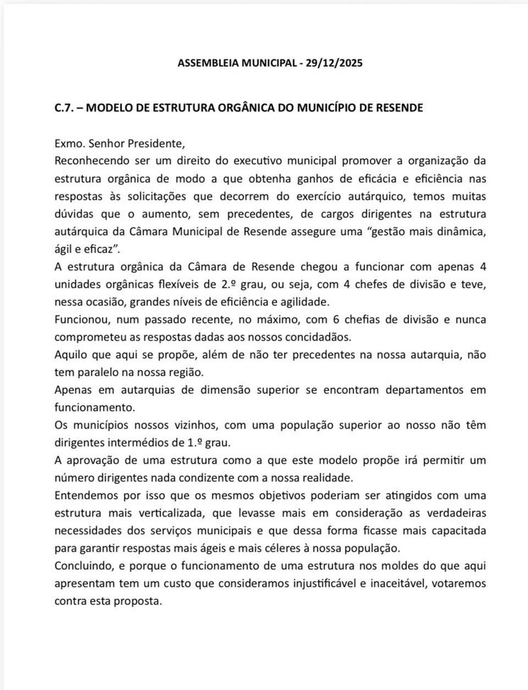 É um escândalo a proposta que a maioria do PSD fez aprovar no Município de Resende ao aumentar a estrutura dirigente de 6 chefes de divisão para 12 lugares de dirigentes, correspondentes a 3 diretores de departamentos, mais 7 chefes de divisão e 2 chefes de unidade.